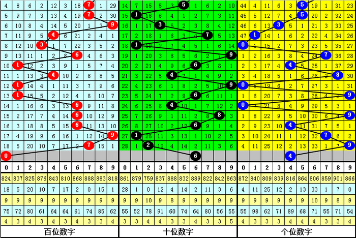 百位分析:上期开出7,下降2点,本期继续走小,关注0。