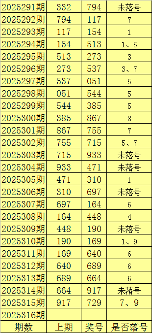 一、上期回顾:福彩3D第2025315期开出奖号729。