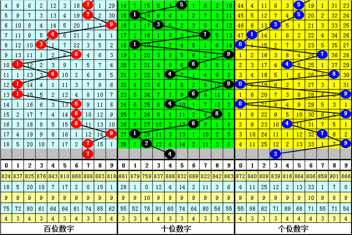 百位上期出现:温号7,该位连续十期以热号出现较多,以冷号出现较少,目前百位热号有4个:1、6、7、9,本期看好开出热号再次出现,参考号码7。